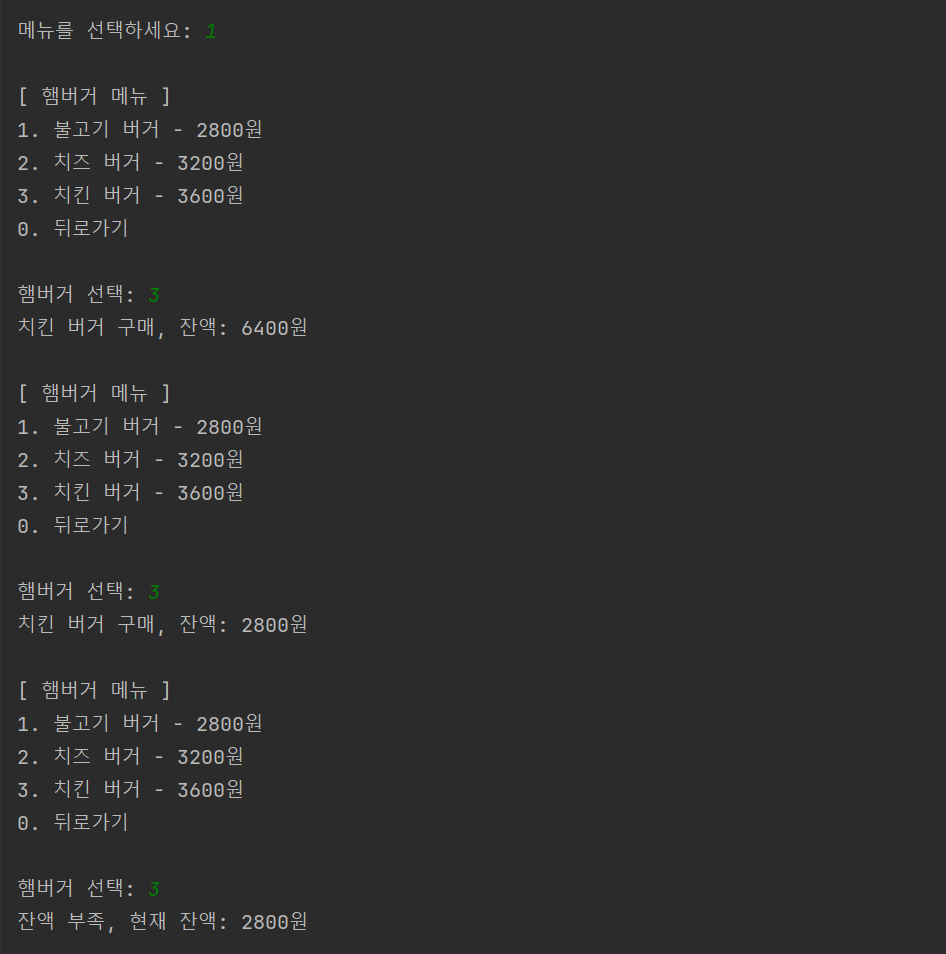 메뉴판에 없는 숫자를 입력했을 때, 다시 입력할 수 있도록 예외처리를 진행한다.