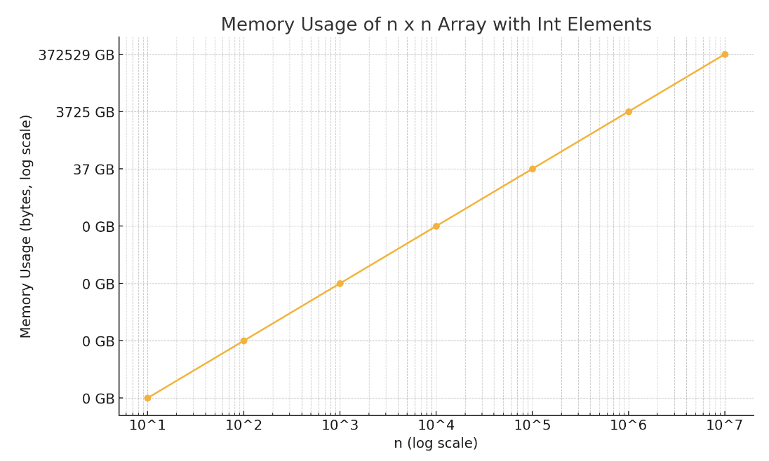 arr의 메모리 사용량은 n x n x sizeof(Int)이며, 만약 n이 최대값으로 들어온다면
